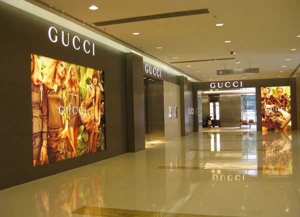 Gucci,意大利時裝品牌,由古馳奧·古馳在1921年于意大利佛羅倫薩創辦。古馳的產品包括是主時裝皮具 皮鞋手表領帶絲巾香水家居用品寵物用品等,中文譯作古馳。GUCCI品牌時裝一向以豪華、性感而聞名于世,以“身份與財富之象征”品牌形象成為富有人的消費寵兒,一向被商界人士垂青,時尚又不失高雅。古馳現在是意大利時裝集團。生彩,深圳大型廣告噴繪公司,我們一直秉著高品質、高質量的態度,以至于在同行中名聲大振。如今,我們為部分古馳店鋪提供廣告噴繪解決方案,譬如UV刀刮布制作,進口燈片制作等等。我們的實力有目共睹!