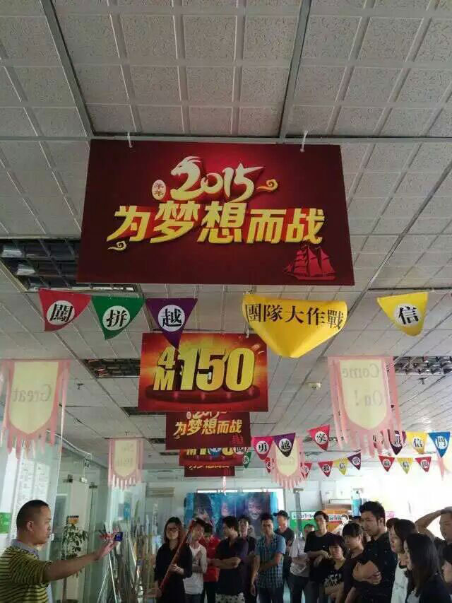 公司制定了2015財年的奮斗目標,確定每個部門的業績目標,團隊間進行PK,隊員確立自己的奮斗夢想。“為夢想而戰”宣誓儀式啟動。我們全力以赴,爭做珠三角數一數二的品牌噴繪公司。