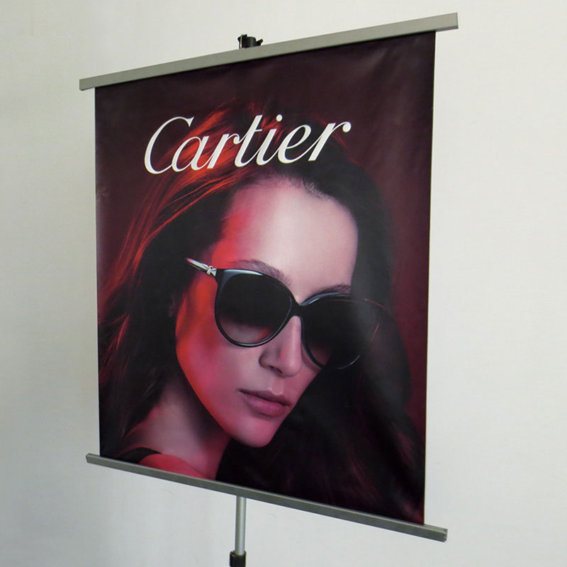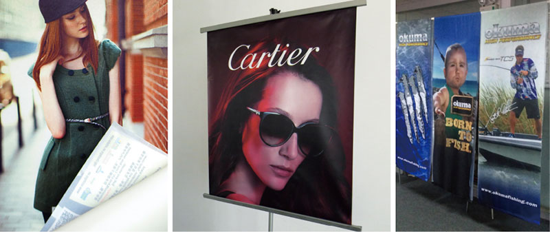 旗、刀旗、易拉寶、拉網展架、彩易展系統、快幕秀、促銷臺、L形展架、人像立牌、海報架等。
