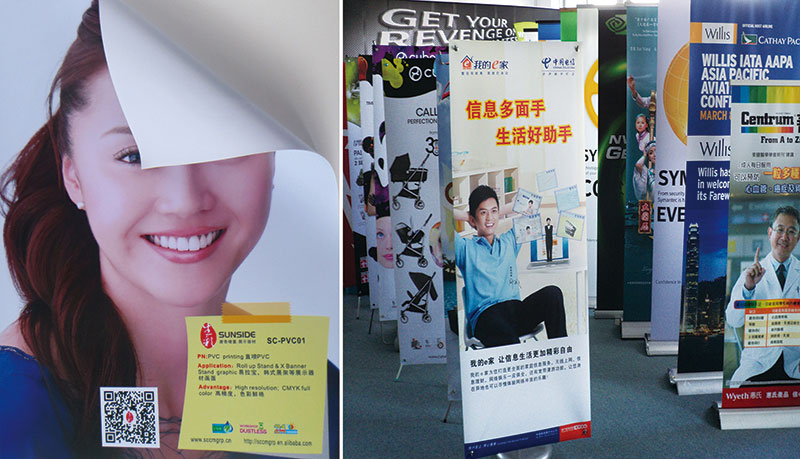 旗、刀旗、易拉寶、拉網(wǎng)展架、彩易展系統(tǒng)、快幕秀、促銷臺、L形展架、人像立牌、海報(bào)架等。